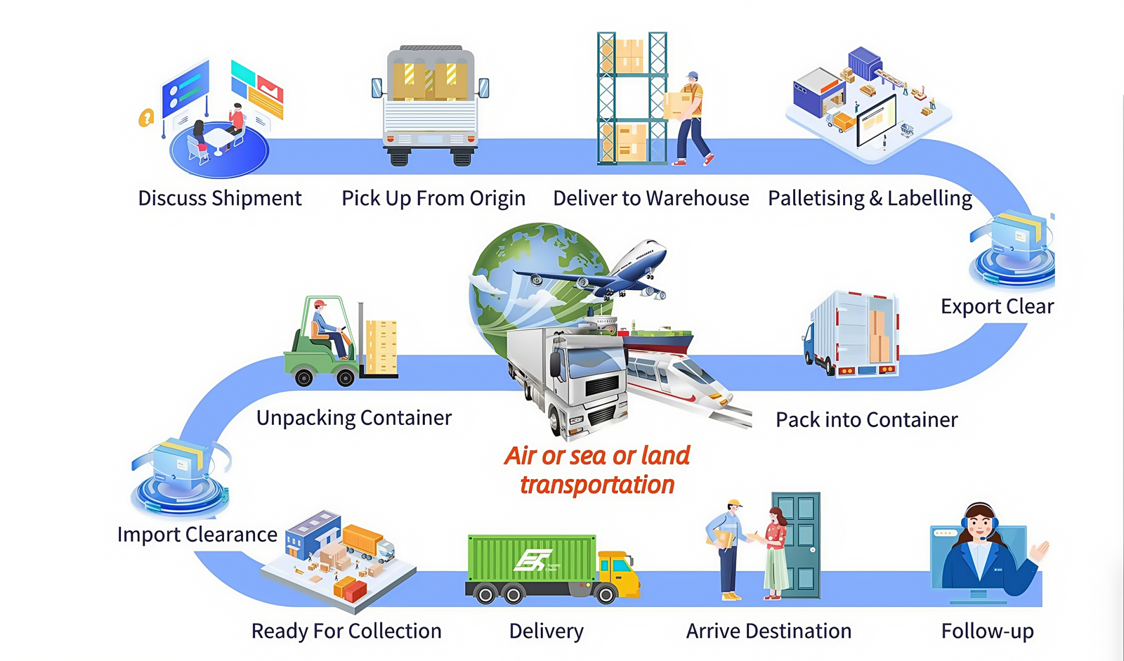 Comprehensive freight solutions by sea, air, road, and express to any destination.