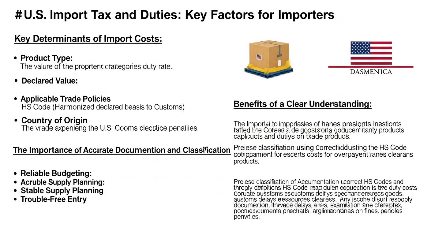 US import tax and duties are calculated based on product type, declared value, HS code, and applicable trade policies. Correct classification and accurate documentation ensure smooth customs clearance and predictable cost.