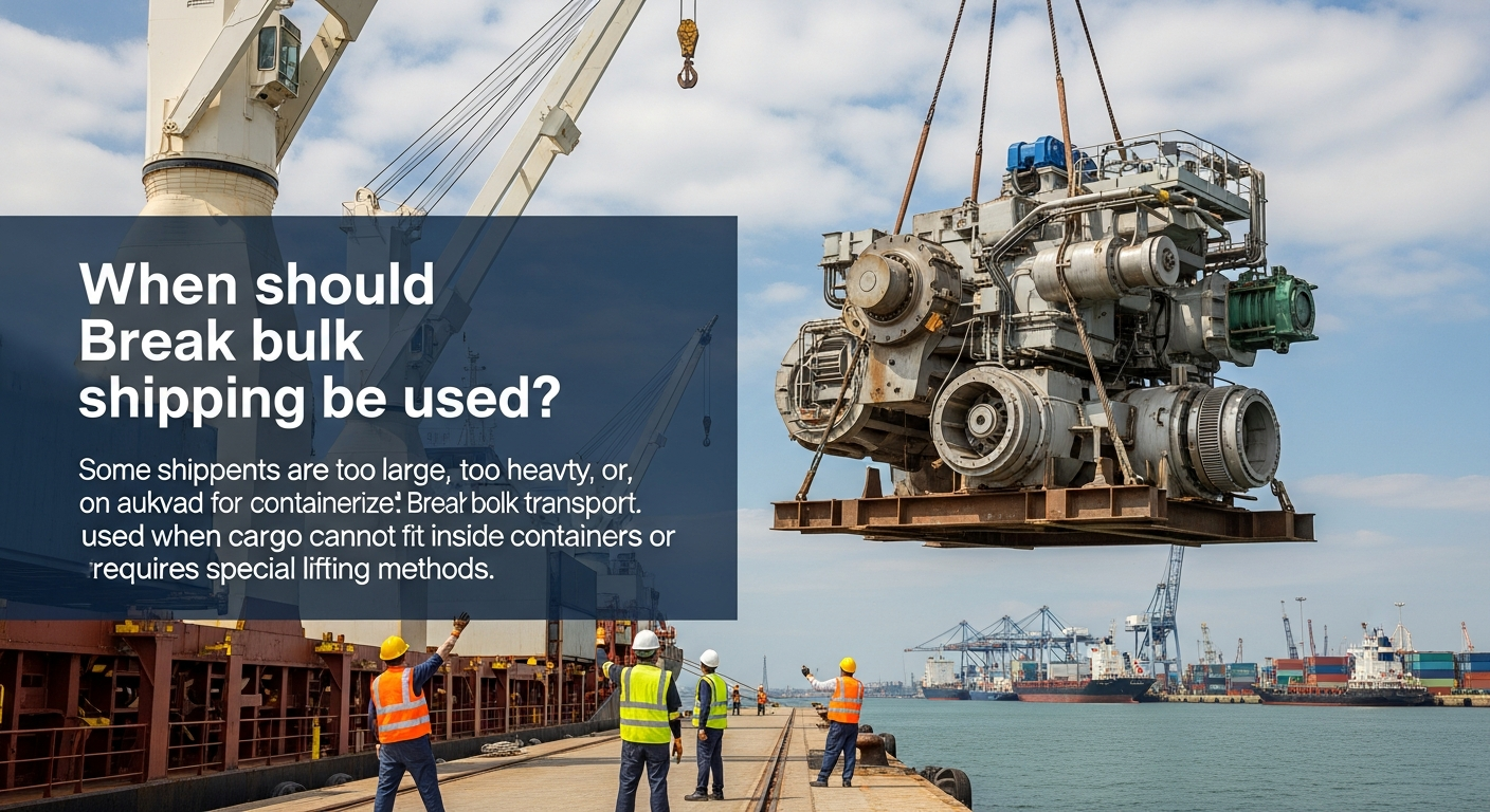 Break bulk shipping is used when cargo cannot fit inside containers or requires special lifting methods.