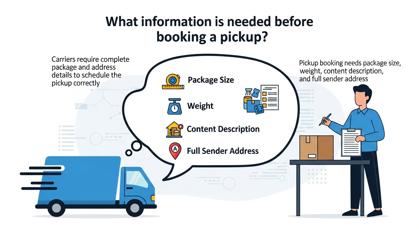 Carriers require complete package and address details to schedule the pickup correctly.