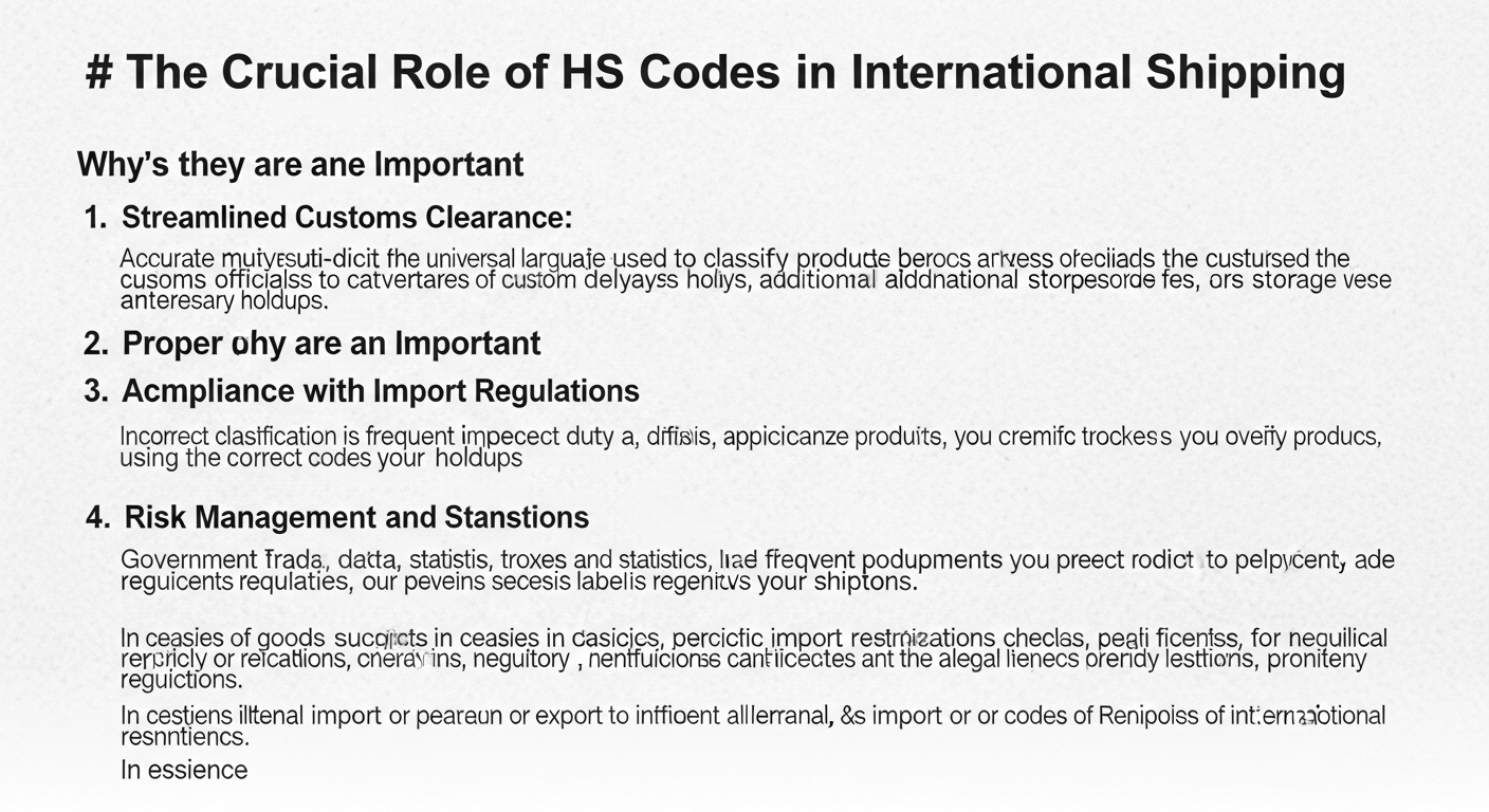Understanding HS codes helps importers avoid customs delays, prevent misclassification penalties, and ensure smooth cross-border shipping.