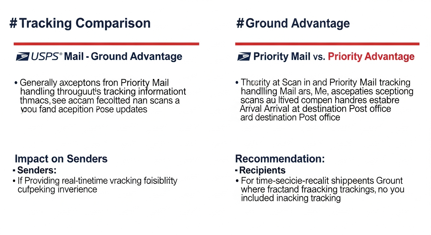 Ground Advantage scans reflect movement through ground transport nodes. Updates can show longer gaps during long-haul segments. Priority Mail moves through air-supported routes and high-priority sorting lines, producing more frequent scan activity.