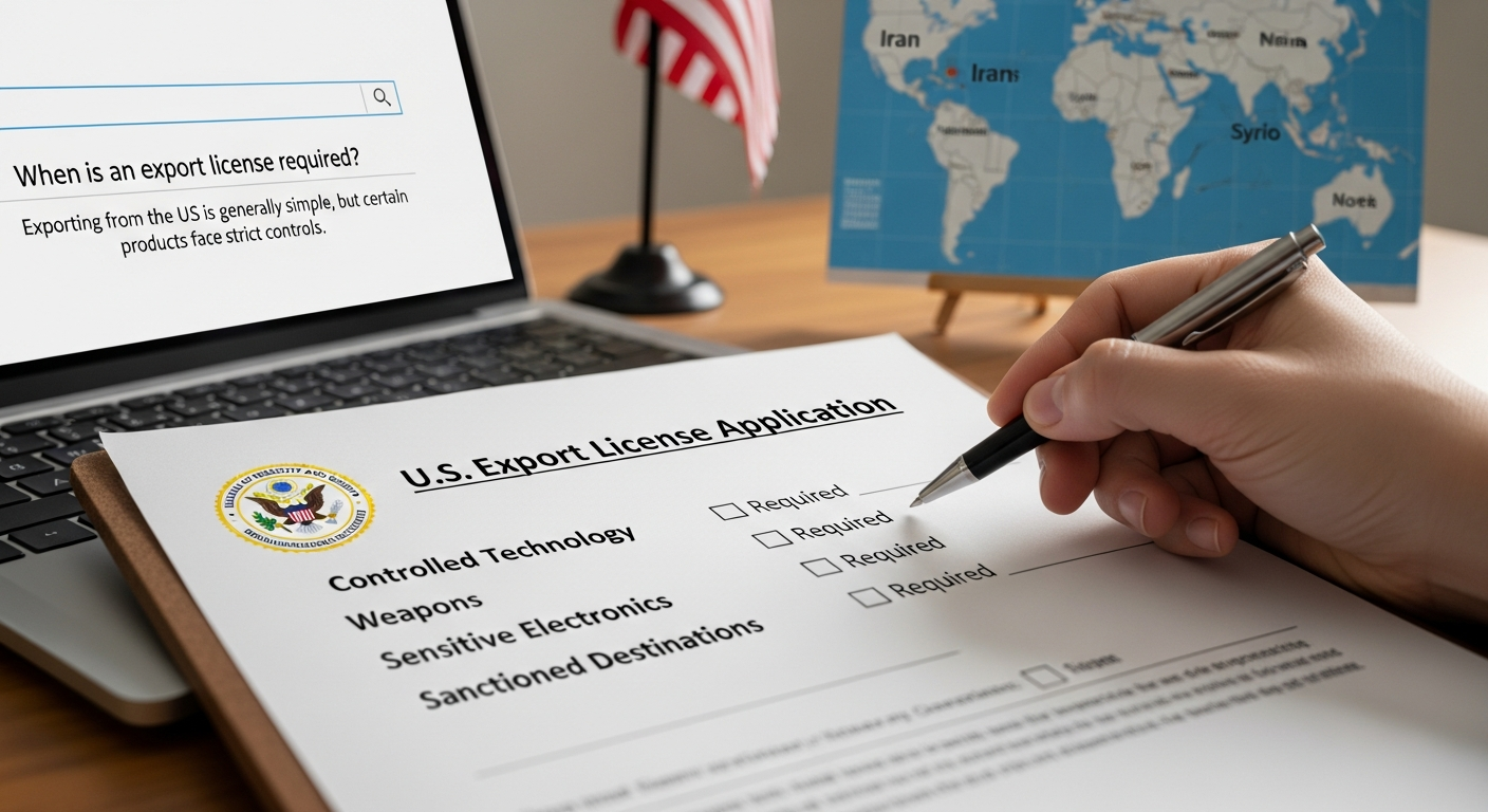 A license is required only when dealing with controlled goods such as weapons, medical devices, chemicals, pharmaceuticals, radios, or items affecting national security. These permits come from agencies like the FDA, FCC, ATF, EPA, or BIS under the Department of Commerce.