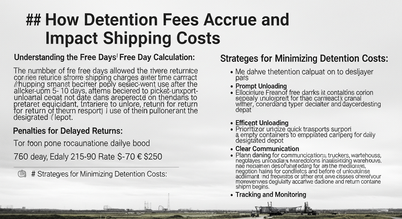Detention covers the period when a buyer (or warehouse) has possession of the container. Carriers allow several free days—often 5–10—to unload goods and return the empty container to a designated depot. If the container is not returned in time, detention fees begin.