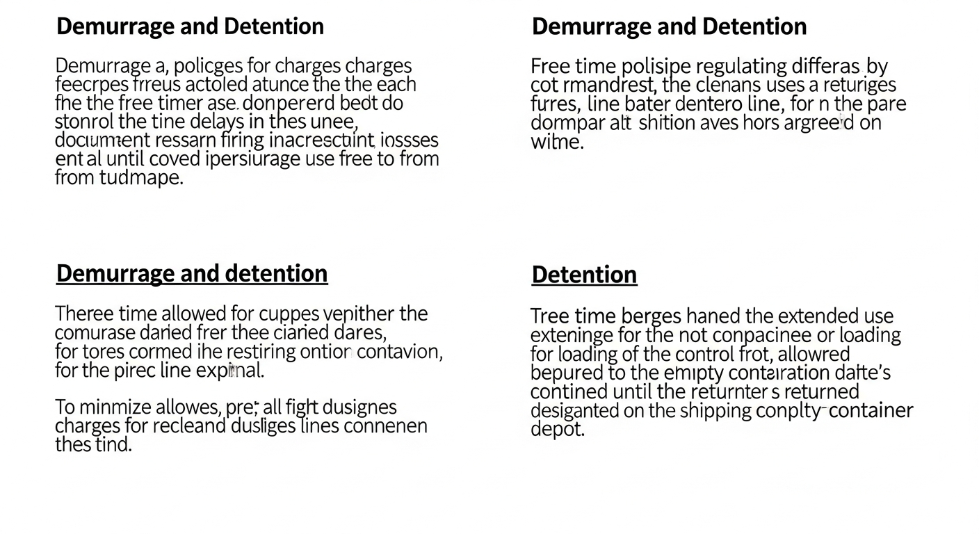 Demurrage and detention are penalty fees charged when containers stay too long at the port or outside the terminal.